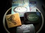 Finally had a chance to visit Michaels today. Procured the rest of the materials I need to cross stitch: a hoop, needles and more floss. I also ended up buying another rubber stamp and ink. They were on sale! Couldn’t resist.