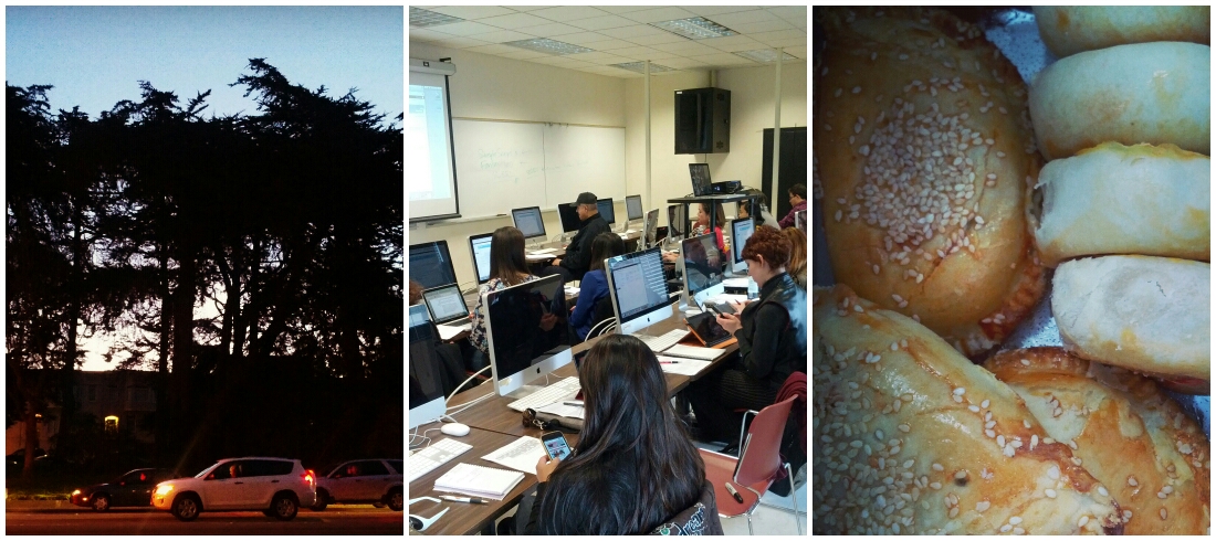 Photo 1 (from left): This was taken at roughly 7 a.m. on Friday, Jan. 11. I was on my way to San Francisco State University for Renaissance Journalism’s LearningLab. Once upon a time (a year or so ago) I was their web producer, and they asked me to help organize it again this year. Even though I was grumpy from waking up at 5 a.m. to get ready and ride the bus to campus, I had to stop and take in the gorgeous morning sky. I don’t often enjoy sunrises, as I’m a night person.
